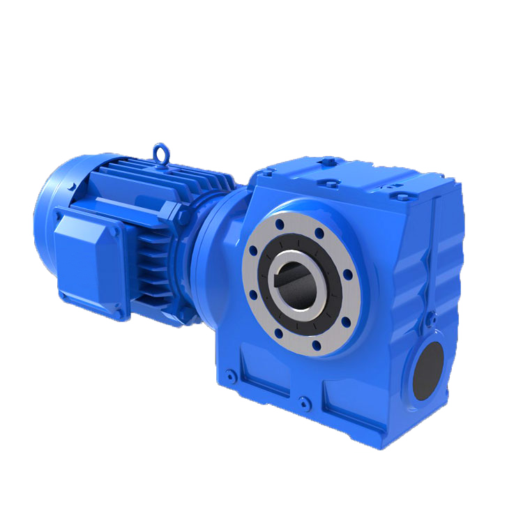 K斜齒-螺旋錐齒輪減速機特點 垂直輸出、結構緊湊、硬齒面傳遞扭矩大、的齒輪保證了工作平穩、噪音低、壽命長。安裝方式:底座安裝、法蘭安裝、扭力臂安裝、小法蘭安裝。輸入方式:電機直聯、電機皮帶聯接或輸入軸、聯接法蘭輸入。 輸出方式:空心軸輸出或實心軸輸出,平均效率為94%。減速比:基本型8.1-191,組合至13459。